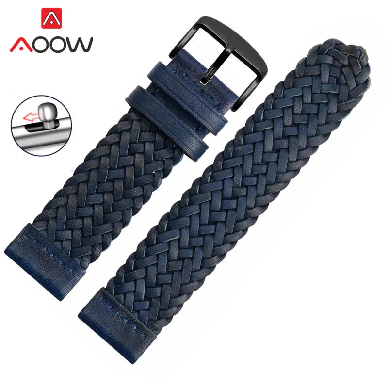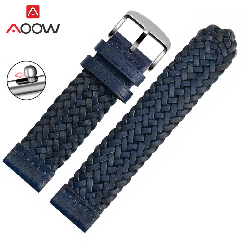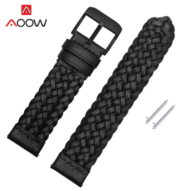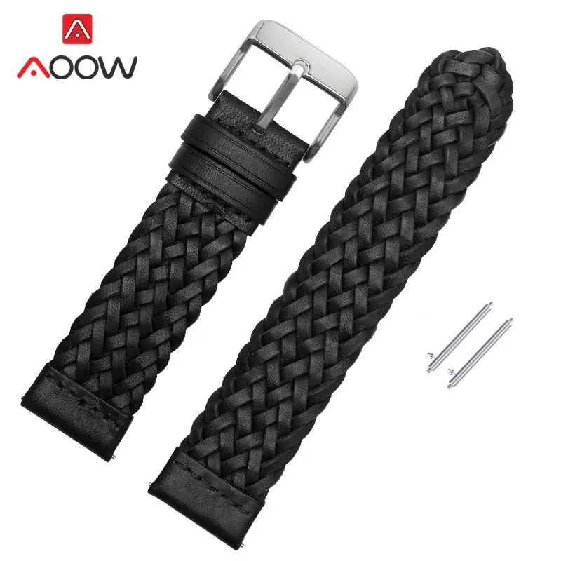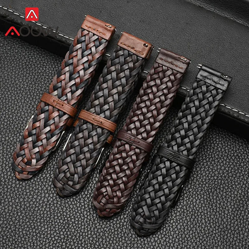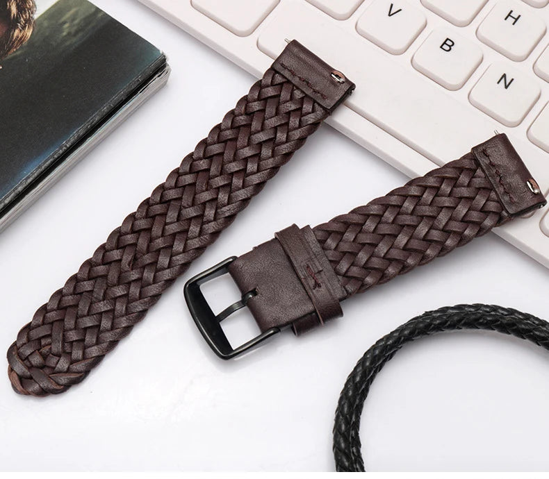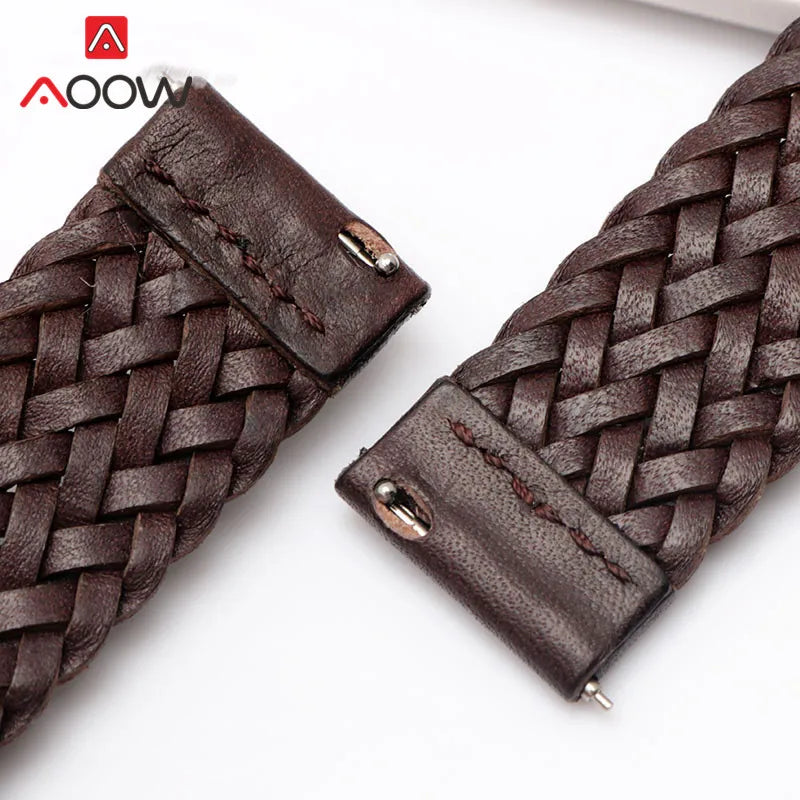 20mm 22mm 24mm Braided Genuine Leather Strap Quick Release Men Women Replacement Bracelet Belt Wrist Band for Smart Watch Brown
