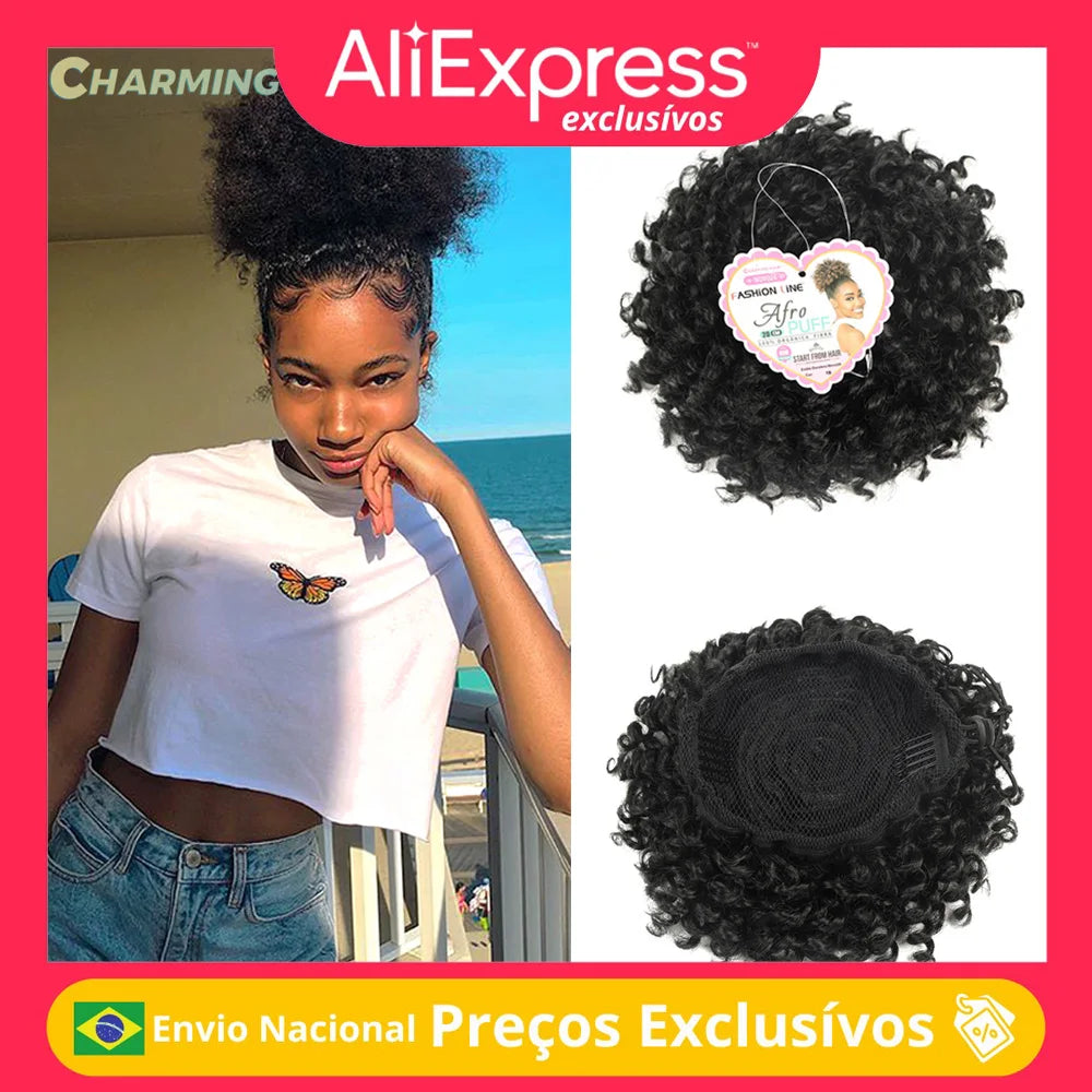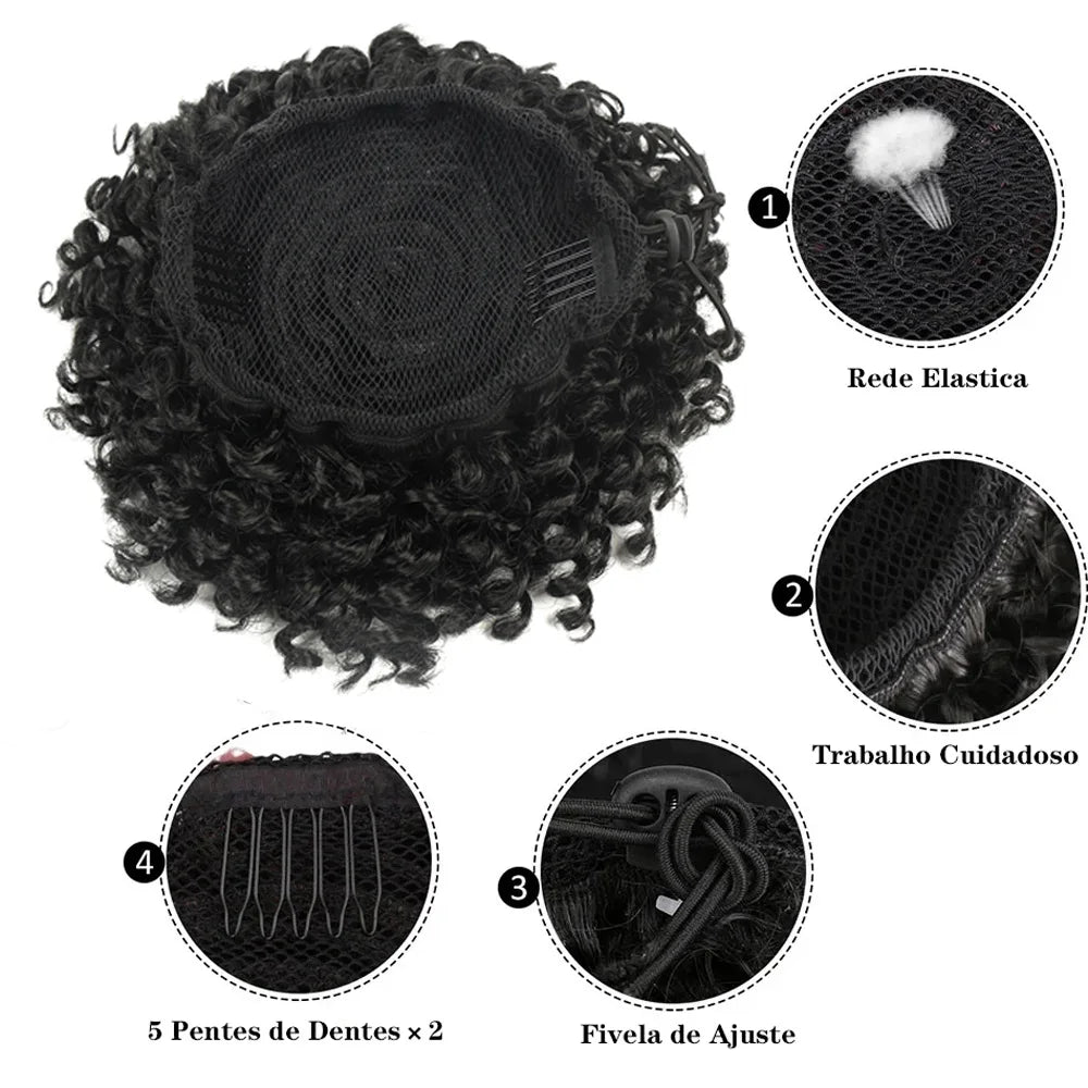 Estilo do cabelo:Rabo de cavalo Afro Puff,SintéticoRabo de cavalo com cordão,2 clipes para consertar.