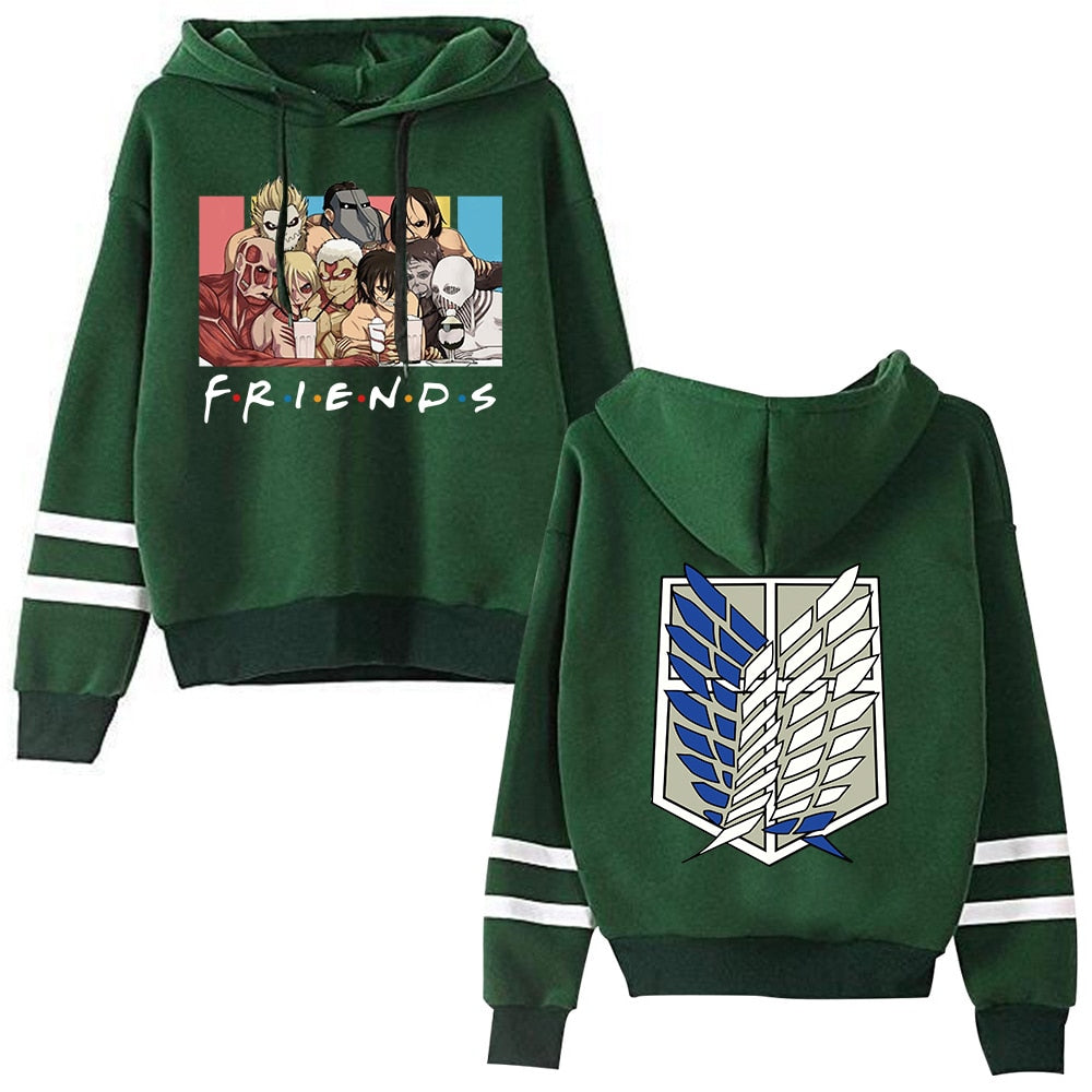 Attack on Titan Long Sleeved Striped Hooded Sweatshirt Pullover Tops Harajuku