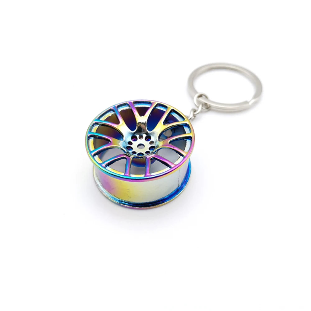 Car Parts Keychain NEO Chrome Metal Keyring Wheel Hub Nitrogen Gas Bottle Shock Absorber Key Chain Whistle Turbine Auto Interior