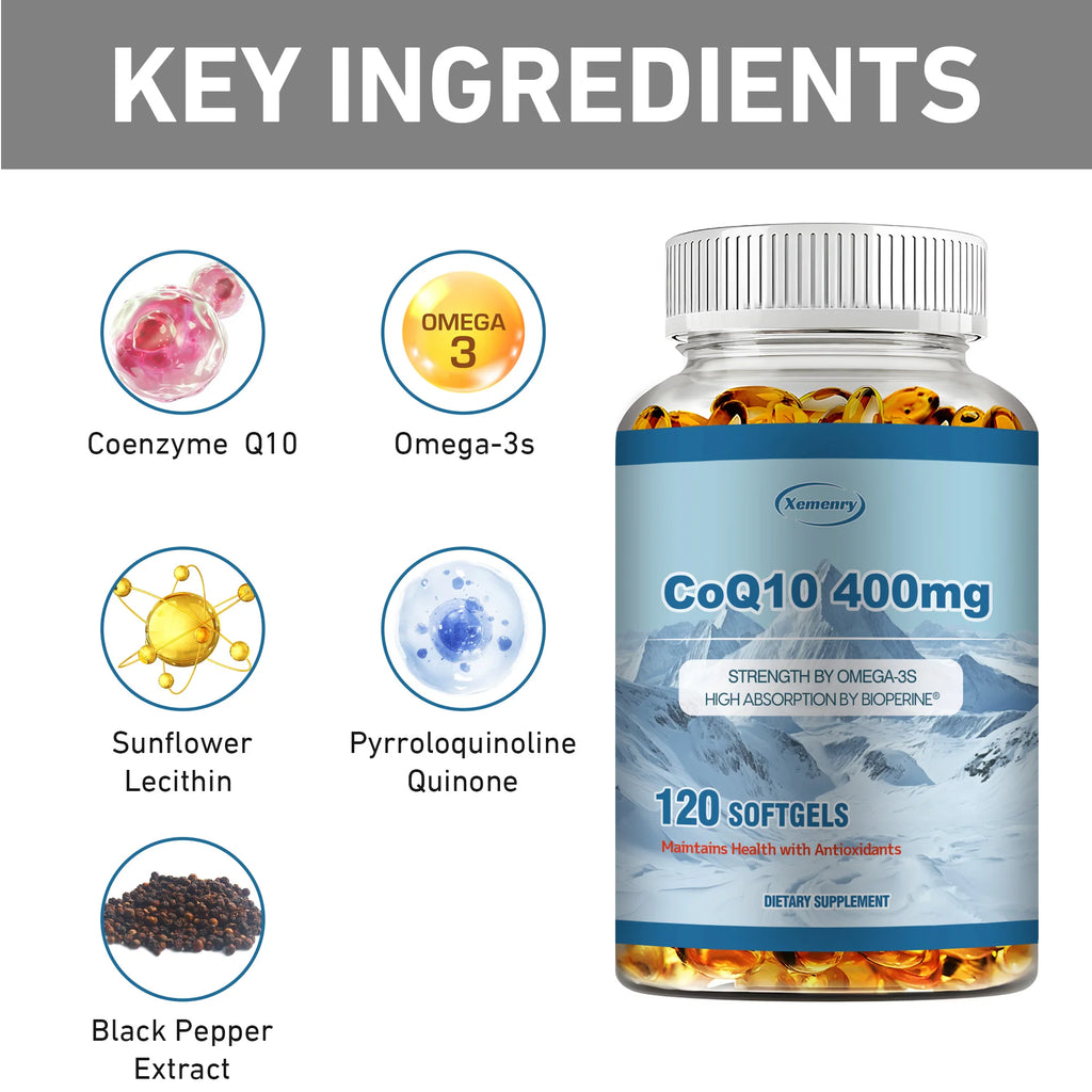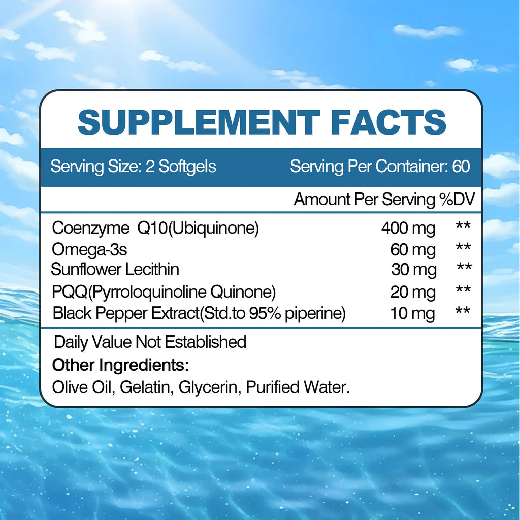 ENHANCED COQ10 WITH PQQ: Our 400 mg CoQ10 boosts natural CoQ10 levels for heart health. Combined with PQQ, it enhances mitochondrial energy production, which is essential for efficient energy and optimal heart function.