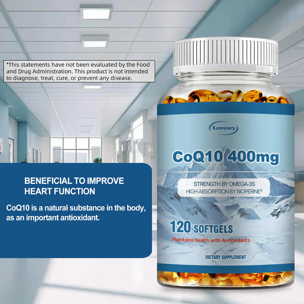 CoQ10 400mg - Supports Energy Production, Heart, Cardiovascular Health, Promotes Blood Circulation, Antioxidant - 120 Capsules