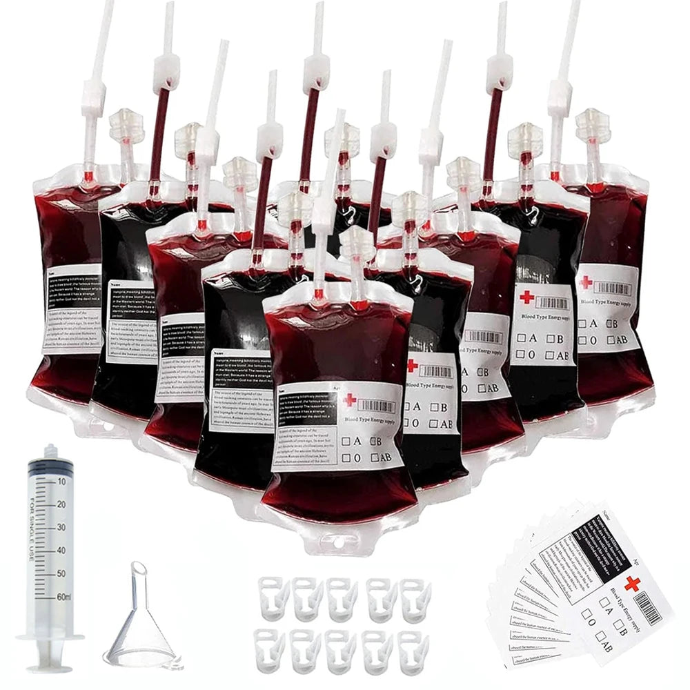 Empty Blood Bags Drinks for Halloween Zombie Vampire Costume Props Nurse Graduation Theme Party Favors Drink Pouches 10/20 PCS