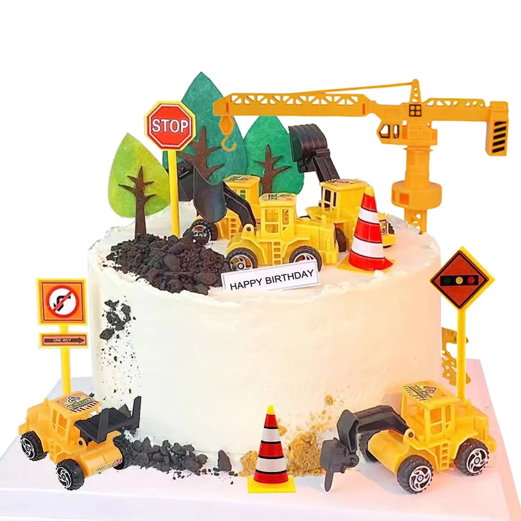 Excavator Car Crane Tractor Birthday Cake Topper Construction Party Decor Boy Kid Baby Shower 1st Birthday Party Cake Baking Kit