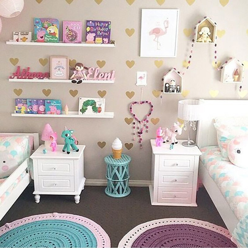 Gold Hearts Wall Stickers for Kids Room Bedroom Living room Home Decoration DIY Stickers Baby Girl Wall Decals Nursery Room