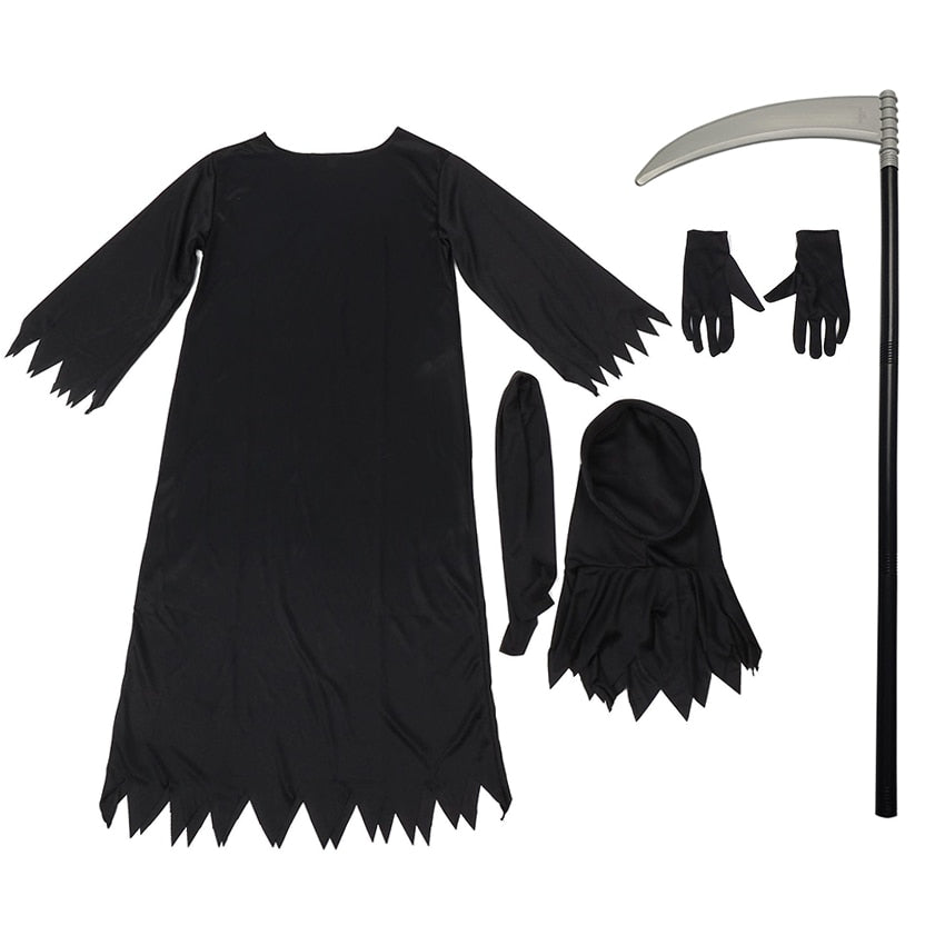 Grim Reaper Costumes Terror Luminous Eyes Death Hook Sickle Boys Cosplay Anime Children Halloween Costume for Kids Carnival Prop