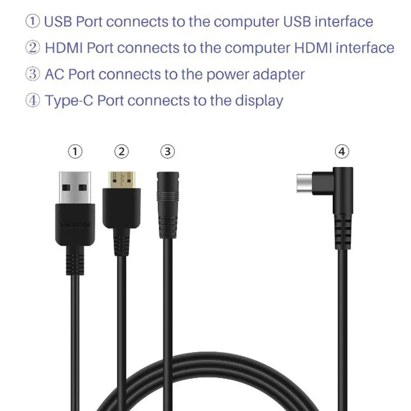 Havapen 3 in 1 cable cb01 compatible with huion kamvas pro 12 / pro13 / pro16, tablet pen monitor replacement cable