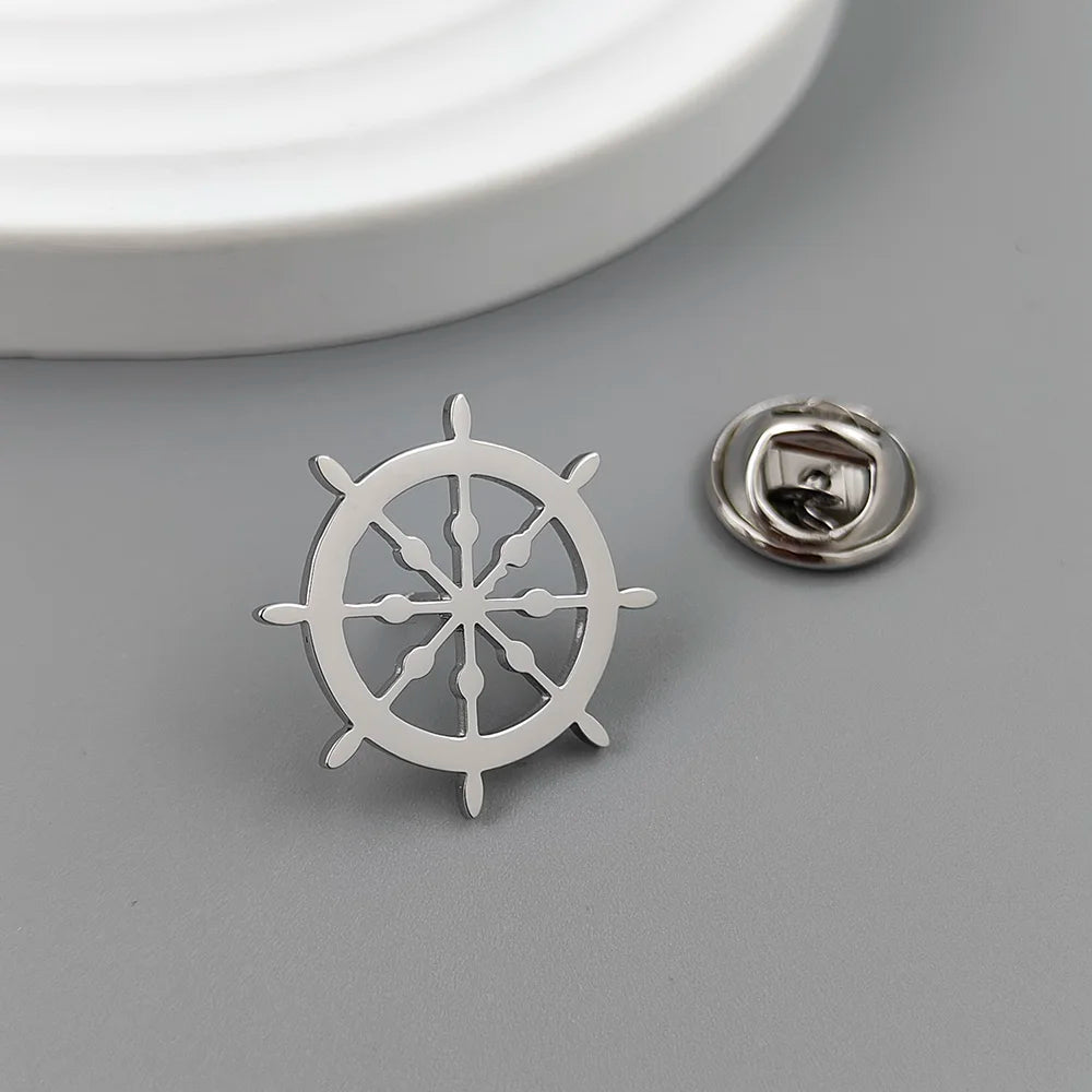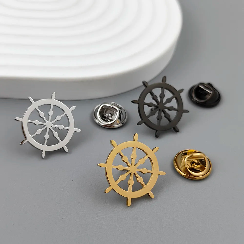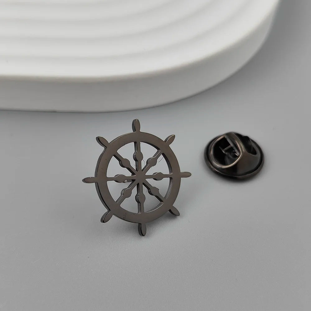 Hollow gold-plated rudder badge, black men's collar brooch, silver lapel pin, men's suit accessories set, Father's Day gift