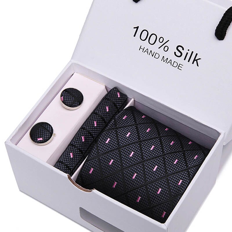 Joy alice New Men's Tie Hanky Cufflinks Set With Gift Box Red polka dot Fashion Ties For Men Wedding Business Party Groom SB43