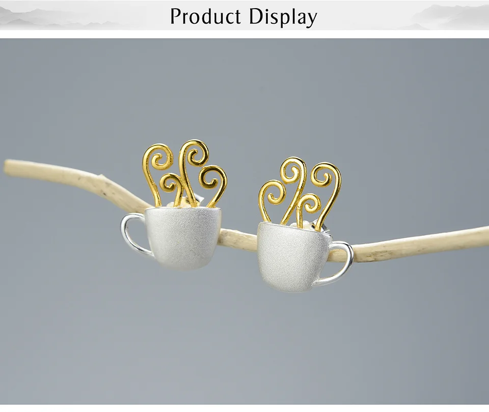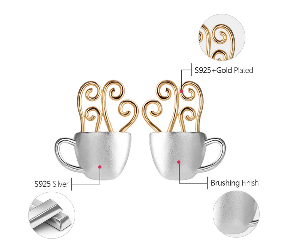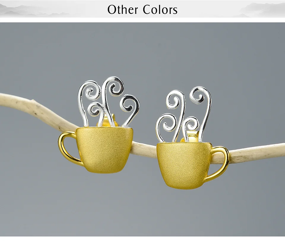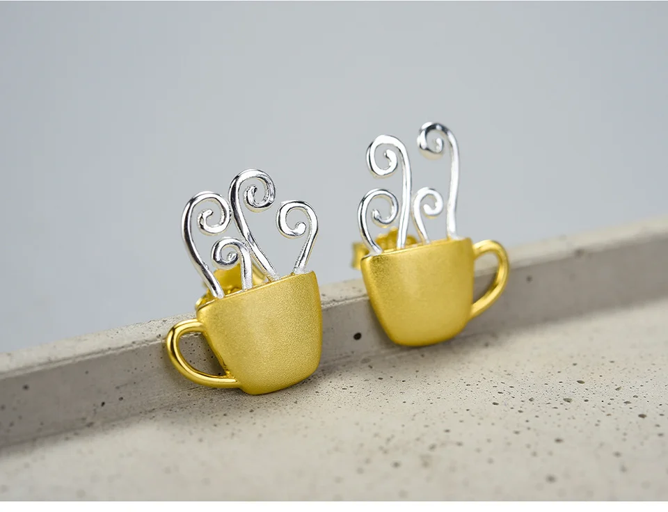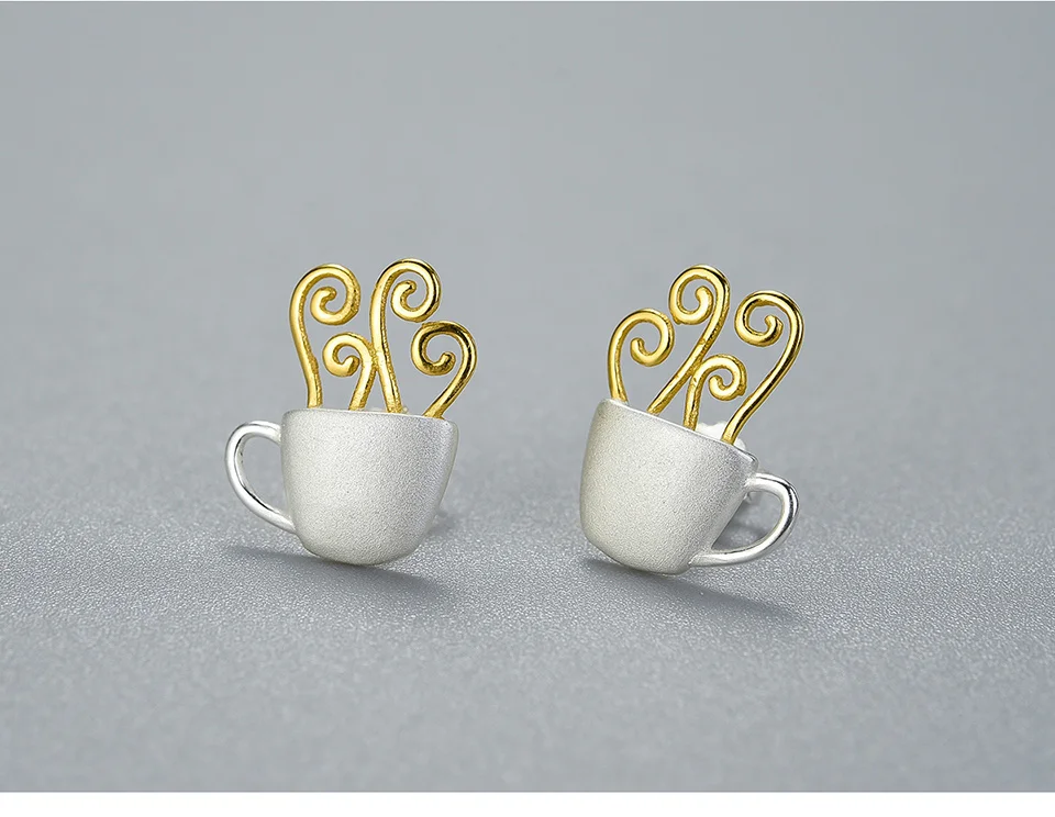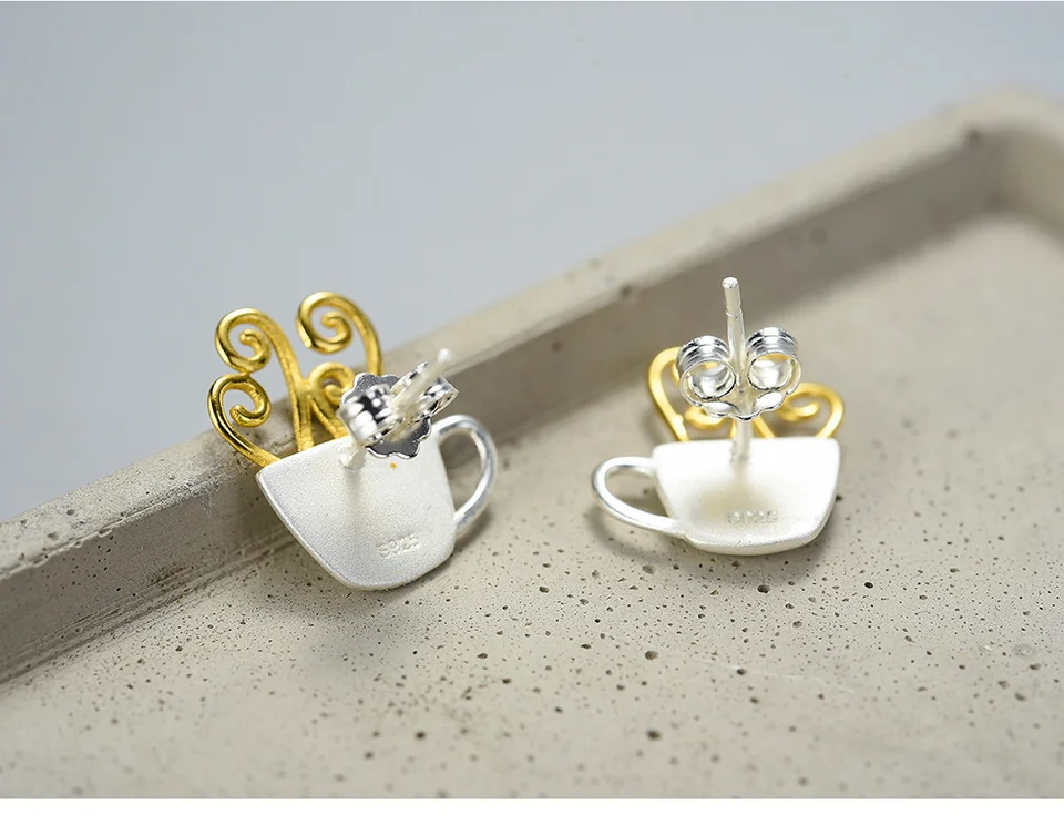 Lotus Fun Real 925 Sterling Silver Earrings Original Handmade Fine Jewelry Hot Coffee Cup Fashion Stud Earrings for Women Gift
