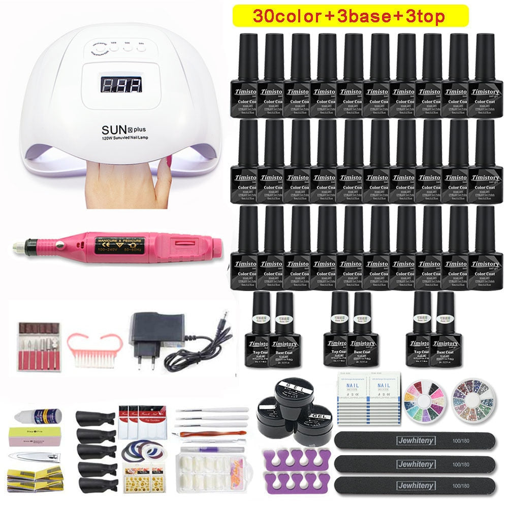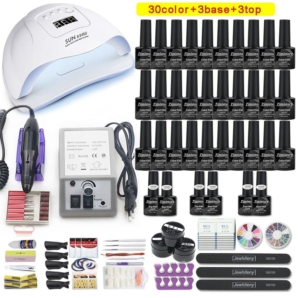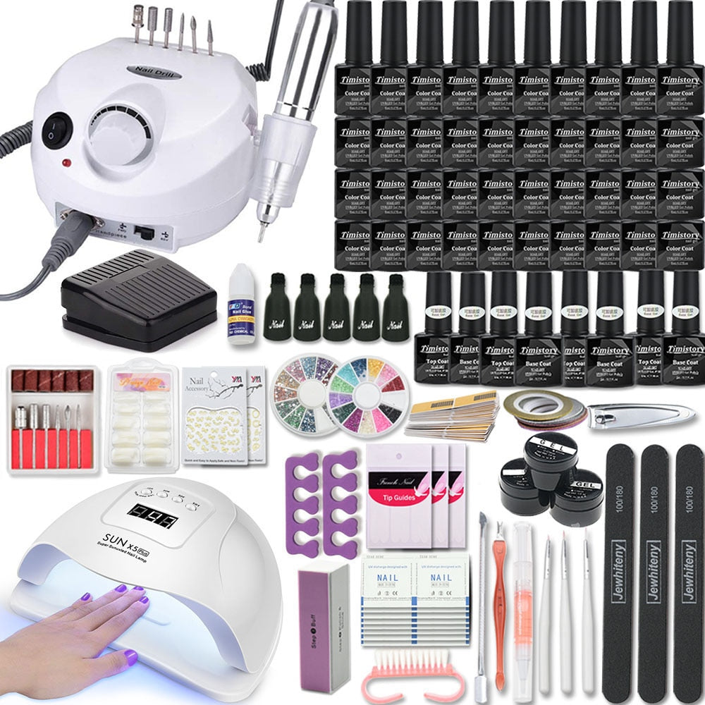 Nail Set with Nail Lamp Manicure Set 40/30/20/10 Color UV Polish Gel Nail Kit Tool Set with Nail Files Nail Drill Machine