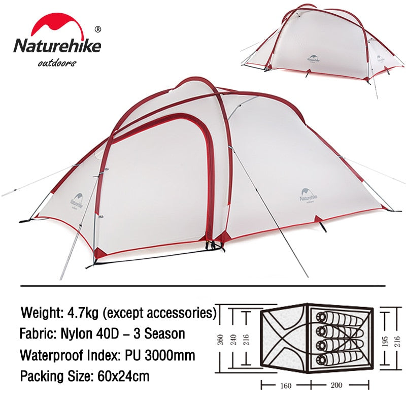 Naturehike Tent 3 4 Person Camping Tent Hiby Family Travel Tent Ultralight Waterproof Hiking Tent Portable Outdoor Camping Tent