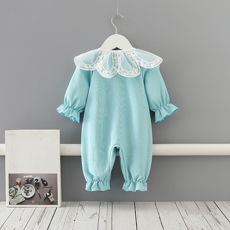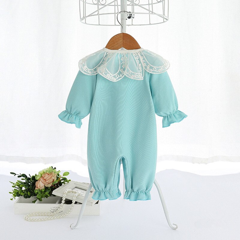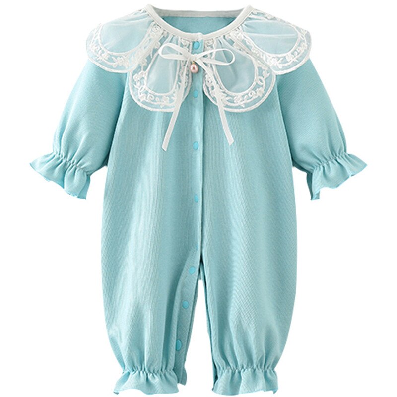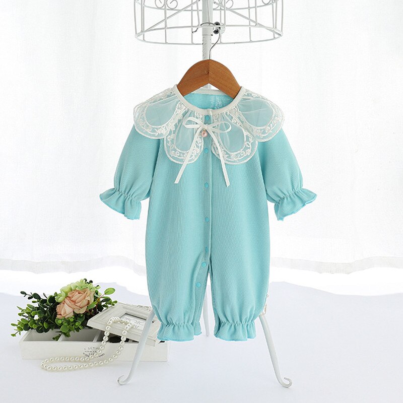Newborn Toddler Infant Baby Girls Rompers Lace Collar Jumpsuit Playsuit Little Girls Outfits Baby Clothes Blue 0-2T