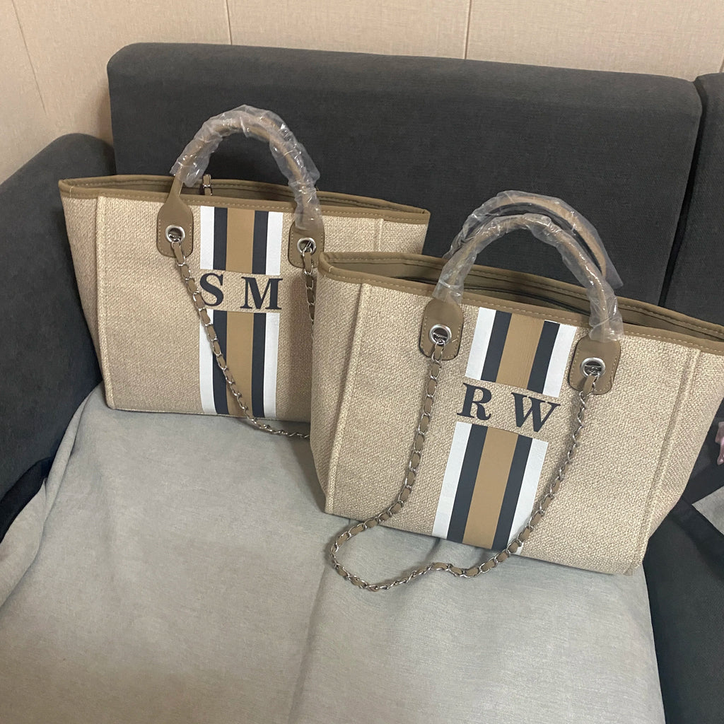 Personalised Chain Monogram Canvas Tote Bag Shoulder Bag Ladies custom bags for women chain Bridesmaids Gifts For Her