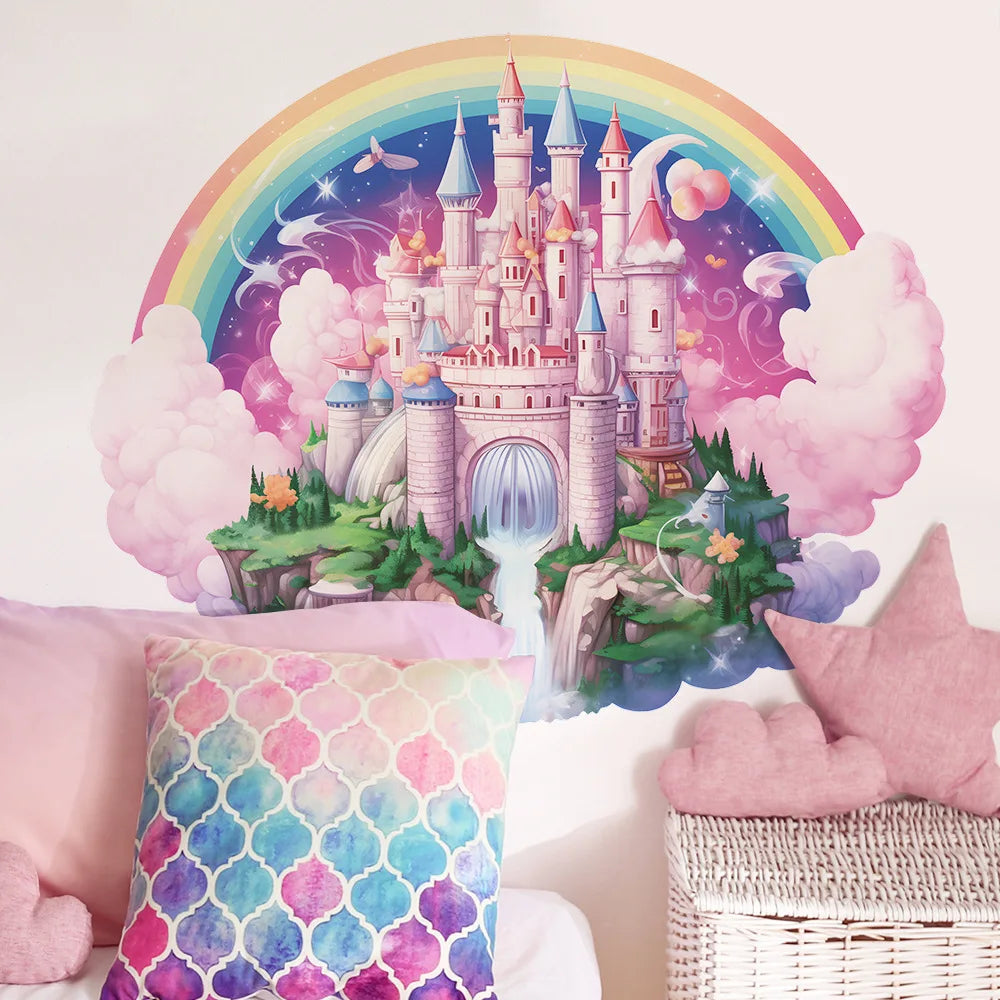 Rainbow Castle Vinyl Child Wall Sticker For Baby Room Decor Bedroom Accessories Furniture Sticker Adhesive Wallpaper Wall Decor