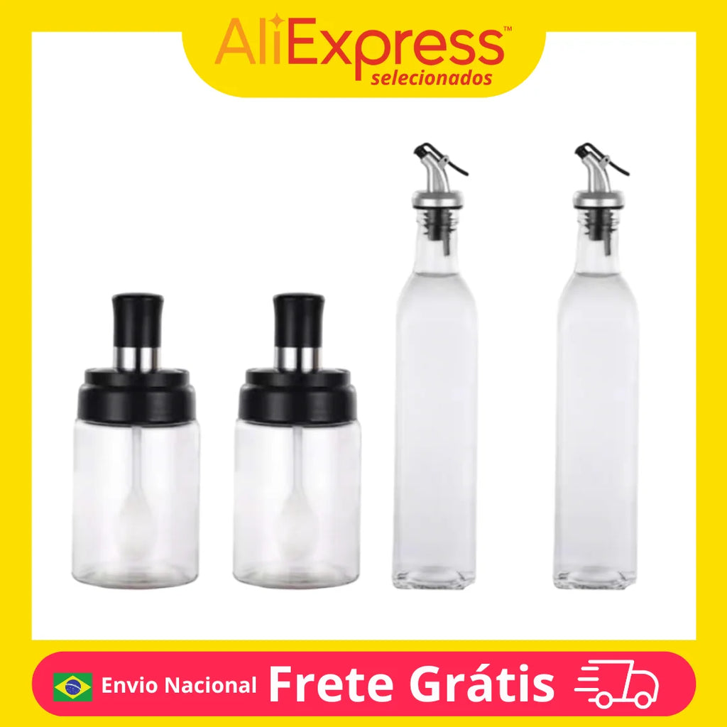 Glass Cruet Door Kit Kitchen Airtight Cover Spoon Measuring Dispenser Olive Oil Vinegar Gift Full Package