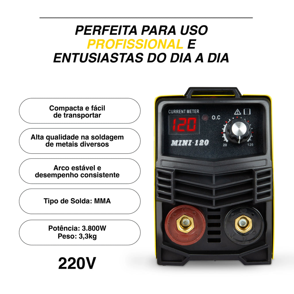 The Mini-120 Welding Inverter Machine is ideal for those looking for compact and efficient equipment for welding. The welding inverter machine is designed to deliver high performance, making it perfect for both professionals and DIY enthusiasts.