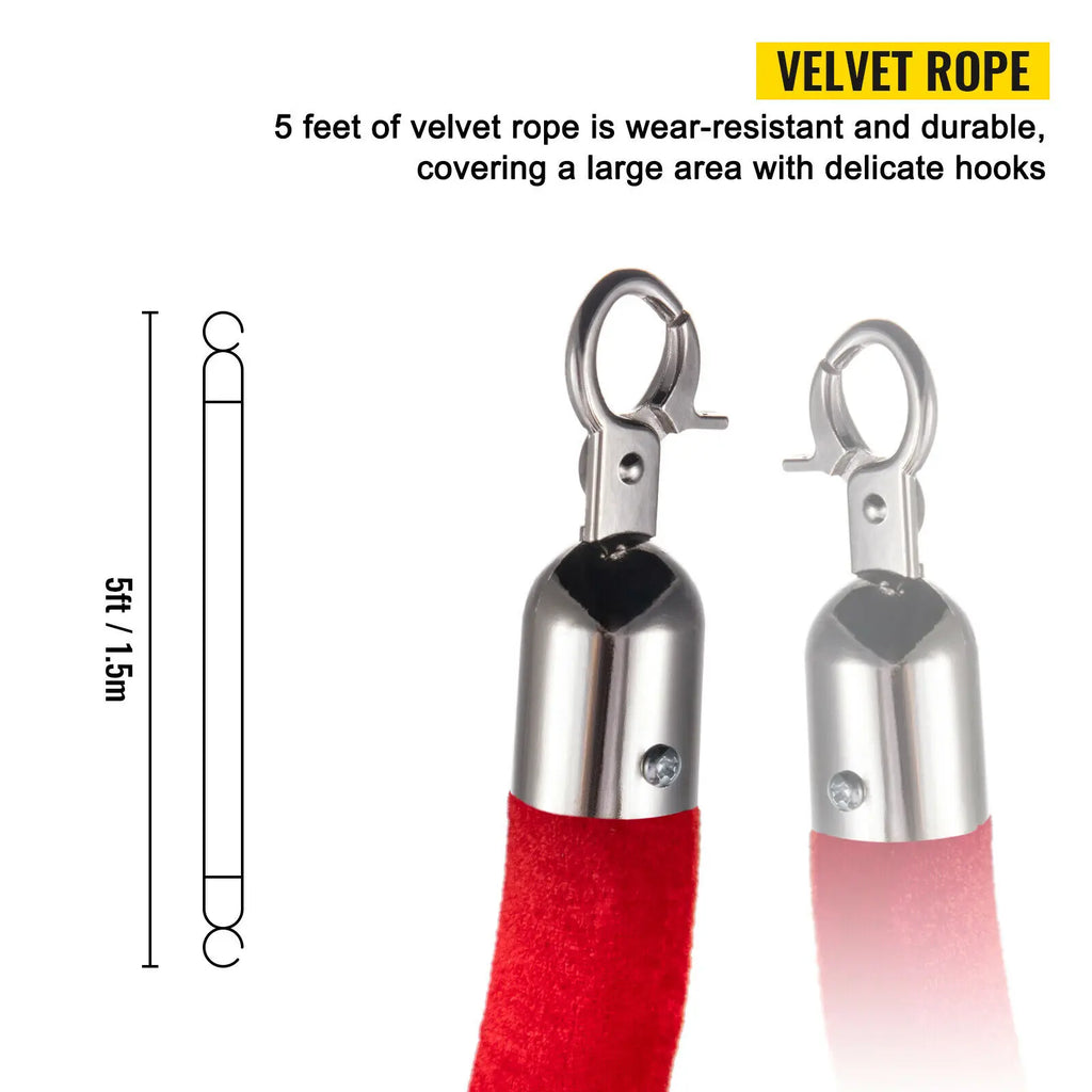 • Easy Installation: There are four adapters at the top of each stanchion post for velvet rope to connect. Furthermore, each rope has hooks at both ends to allow you to attach the rope to the pillars easily and quickly. You don't need to use other auxiliary tools, and you can set it up in a few minutes.