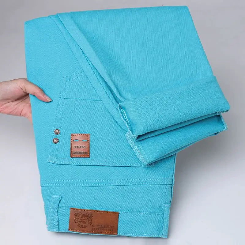White Yellow Pink Red Fashion 5 Color Fashion Men's Stretch Jeans Slim Streetwear Korean Business Straight Casual Denim Trousers