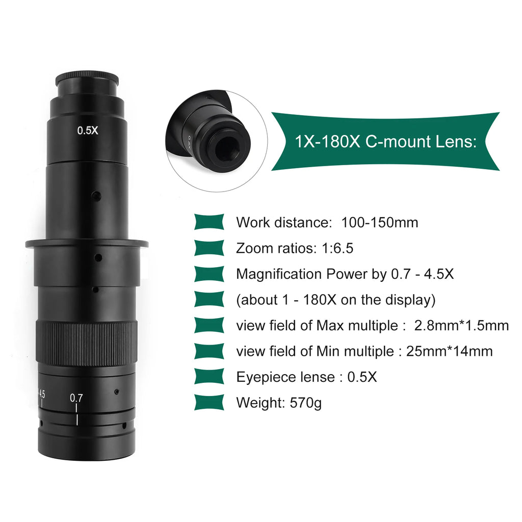 1X-180X C-mount Lens: